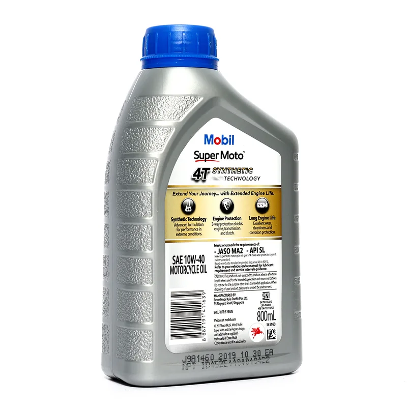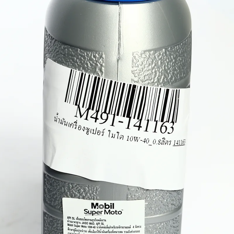 น้ำมันหล่อลื่นเครื่องยนต์เบนซินสำหรับรถมอเตอร์ไซค์กึ่งสังเคราะห์ โมบิล (MOBIL) รุ่น ซูเปอร์ โมโต 10W-40 ความหนืด SAE 10W-40 ขนาดบรรจุ 0.8 ลิตร