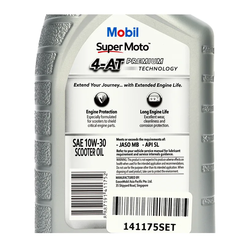 กึ่งสังเคราะห์ โมบิล (MOBIL) รุ่น ซูเปอร์ โมโต สกูตเตอร์ 10W-30 ขนาดบรรจุ 0.8 ลิตร
