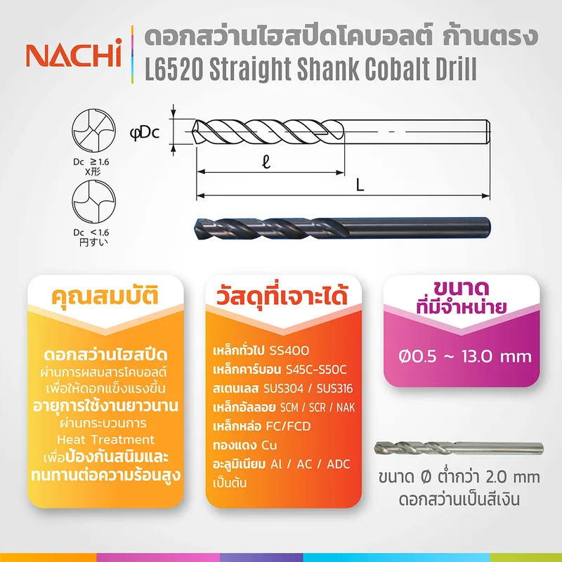 NACHI L6520_1.4MM ดอกไฮสปีดโคบอลต์ก้านตรง