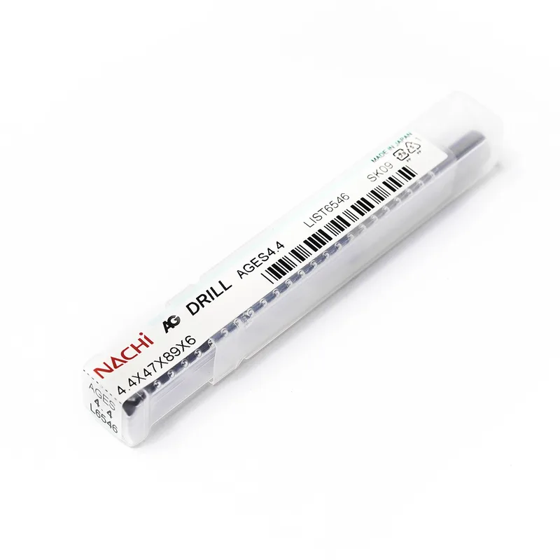 NACHI L6546 Series | ดอกสว่านไฮสปีดเคลือบ AG (AGES Drill)ยกระดับงานเจาะเหล็กแข็งด้วยดอกสว่านประสิทธิภาพสูงรุ่น AGES Drill (List 6546) จาก NACHI ประเทศญี่ปุ่น ซึ่งเป็นดอกสว่านที่พัฒนาขึ้นเพื่อตอบโจทย์งานเจาะรูลึกที่ต้องการความแม่นยำสูงและความเร็วในการทำงานที่เหนือกว่าดอกสว่านไฮสปีดทั่วไปรายการสินค้า (Product List)ขนาด (มม.)รหัสรุ่น (List)ประเภทการเคลือบผิววัสดุหลัก4.4 มม.L6546AG Coating (Al-Cr Based)HSS-Co (Cobalt)