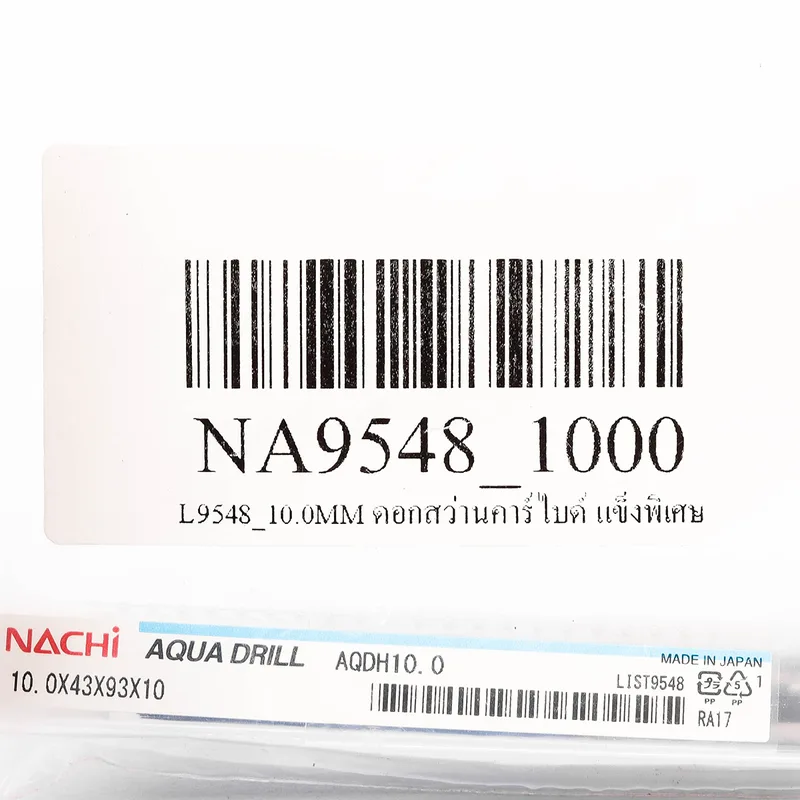 NACHI L9548_10.0MM ดอกสว่านคาร์ไบด์ แข็งพิเศษ