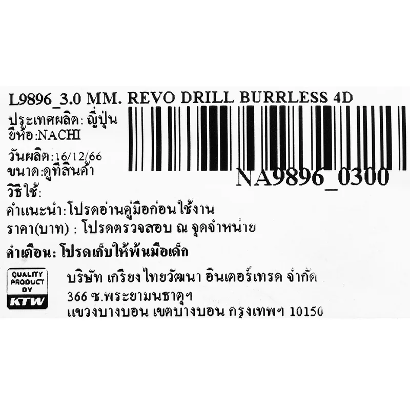 L9896 ดอกสว่านคาร์ไบด์ เคลือบผิว Revo-D Burrless NACHI รุ่น 4D