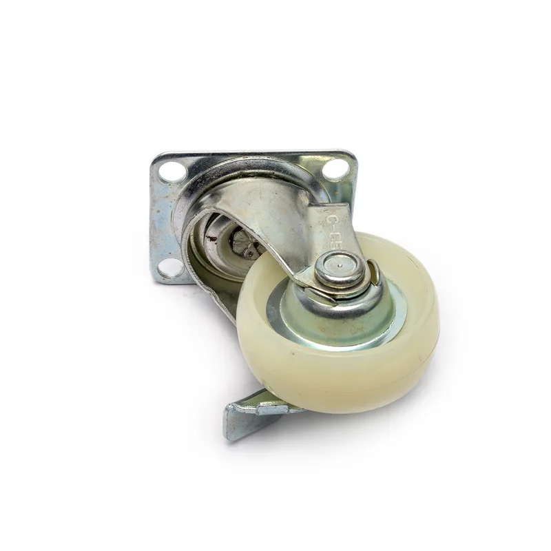 ล้อไนล่อนขาวแบบแป้นหมุนรอบทิศทาง เน้นความคล่องตัวในการเคลื่อนที่และทนทานต่องานหนักในขนาดกระทัดรัด