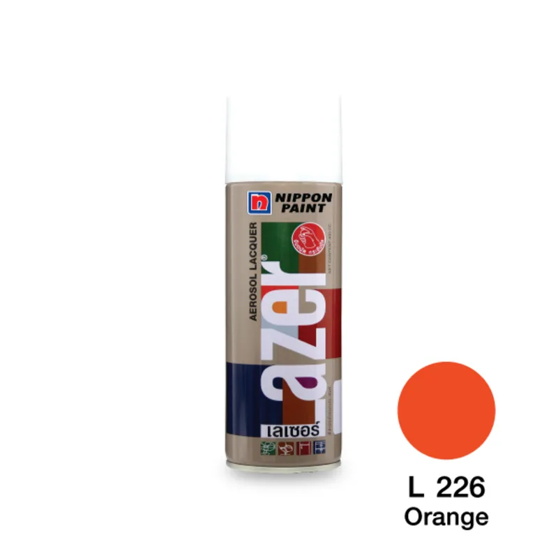 สีสเปรย์อเนกประสงค์ นิปปอนเพนต์ (NIPPON PAINT) รุ่น เลเซอร์ สีแสด L226 เป็นสีสเปรย์อเนกประสงค์เพื่อทุกงานสเปรย์ ใช้งานง่าย ติดทนนาน งานเสร็จเร็ว ยึดเกาะแน่นทุกพื้นผิว ไม่หลุดล่อน ให้ความเงางามสูง