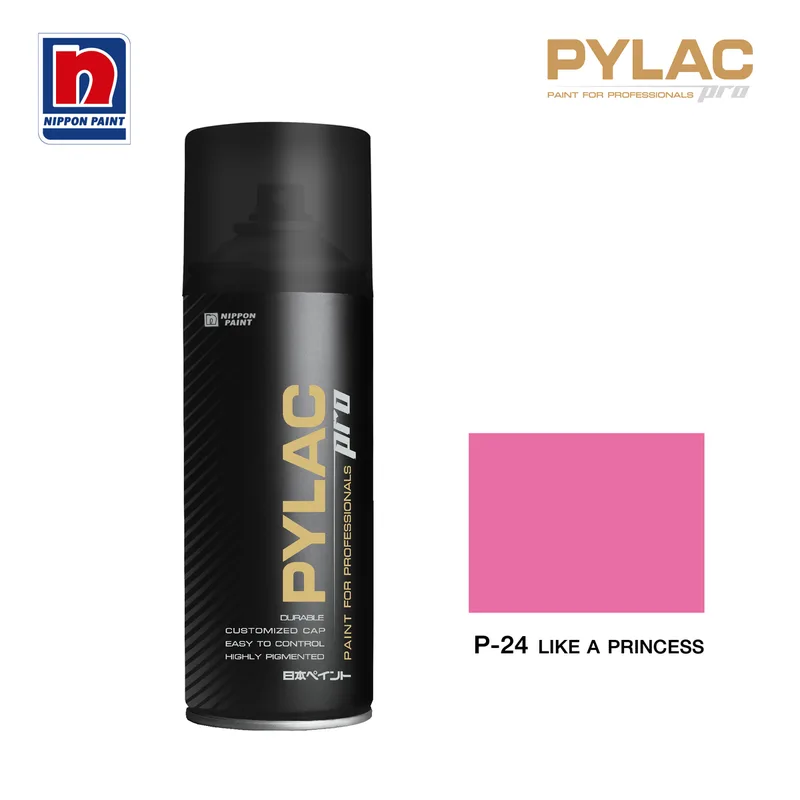 สีอเนกประสงค์ นิปปอนเพนต์ (NIPPON PAINT) รุ่น PYLAC PRO (ไพแลคโปร) สีชมพู P24 สีสเปรย์คุณภาพงานอย่างมืออาชีพ เงางามยาวนาน กลบสนิท สีไม่เยิ้ม มีทั้งหัวพ่นแบบกลมและแบน