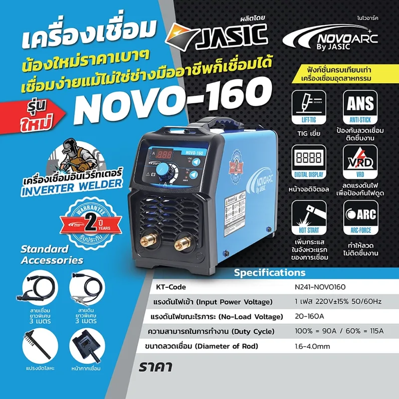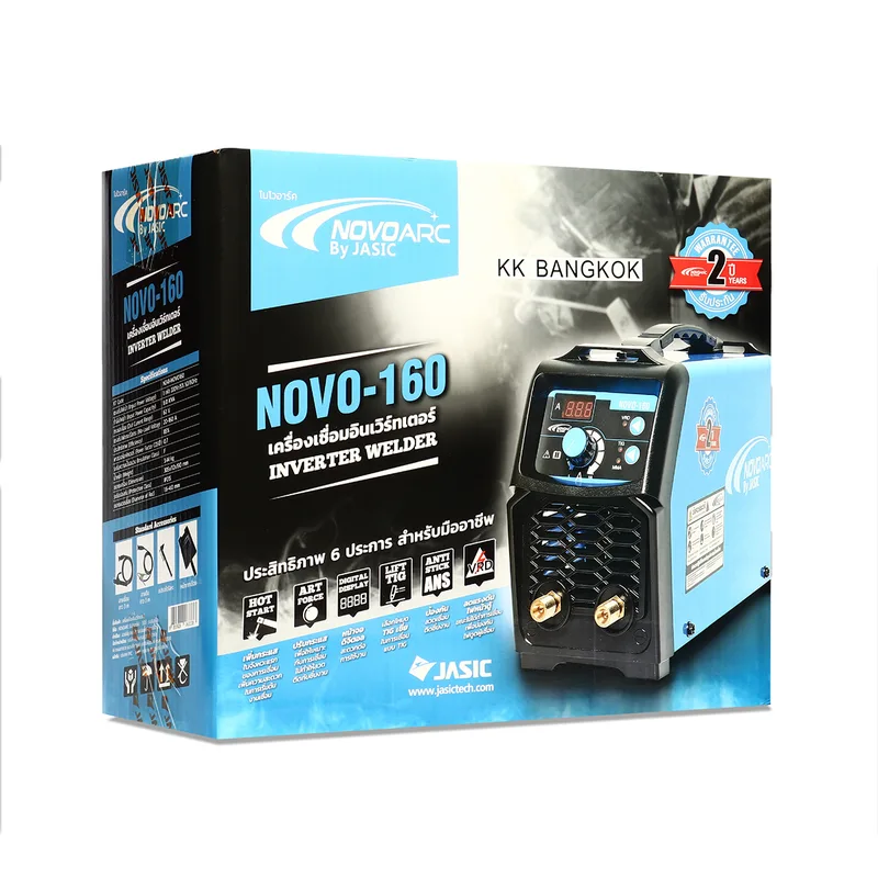 เครื่องเชื่อม IGBT โนโวอาร์ค (NOVOARC) รุ่น NOVO-160 กระแสไฟเชื่อม 160 แอมป์ แรงดันไฟฟ้า 220 โวลต์ ใช้ได้กับลวดเชื่อมทุกชนิด ตั้งแต่ขนาด 2.6 – 4.0 มิลลิเมตร
