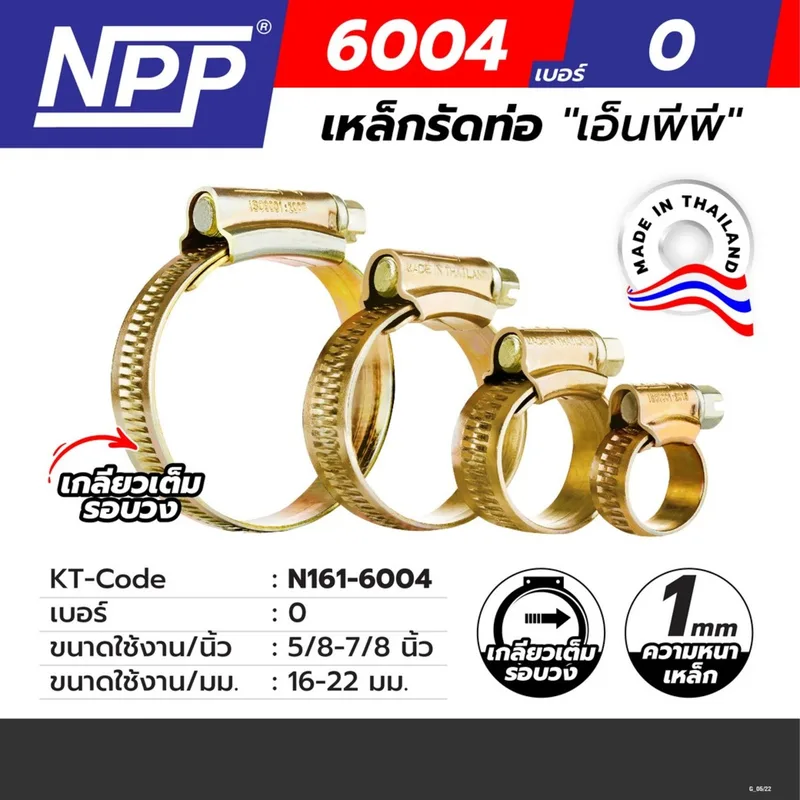 NPP #O เหล็กรัดท่อ ขนาด 16-22 มิลลิเมตร