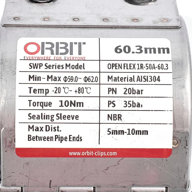 ORBIT แคลมป์ซ่อมท่อ สแตนเลส ขนาด 60.3 มม. รุ่น SWP OPEN FLEX 1R