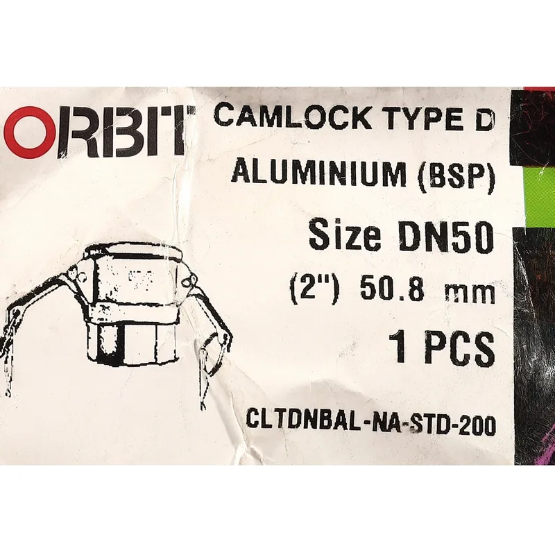 ORBIT ข้อต่อสวมเร็ว อลูมิเนียม แบบ D ขนาด 2 นิ้ว ข้อต่อสวมเร็วตัวเมียแบบเกลียวใน เกลียว BSPP ใช้ในการเชื่อมต่อและถอดสายยาง (ออบิท)