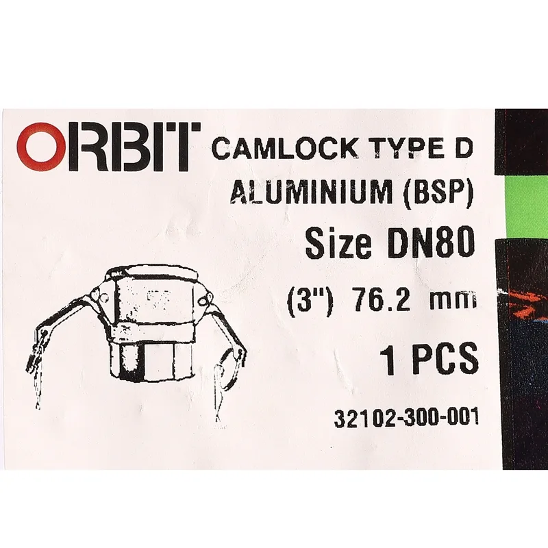 ORBIT ข้อต่อสวมเร็ว อลูมิเนียม แบบ D ขนาด 3 นิ้ว ข้อต่อสวมเร็วตัวเมียแบบเกลียวใน เกลียว BSPP ใช้ในการเชื่อมต่อและถอดสายยาง (ออบิท)