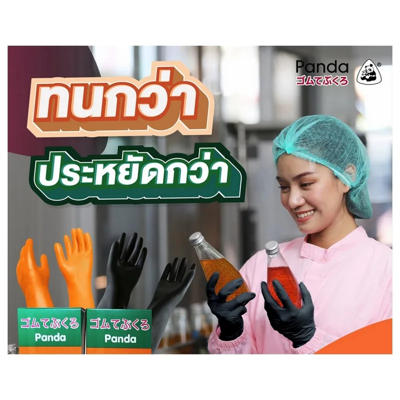 PANDA ถุงมือยางธรรมชาติ ดำ 13 นิ้ว ไซส์ใหญ่ L