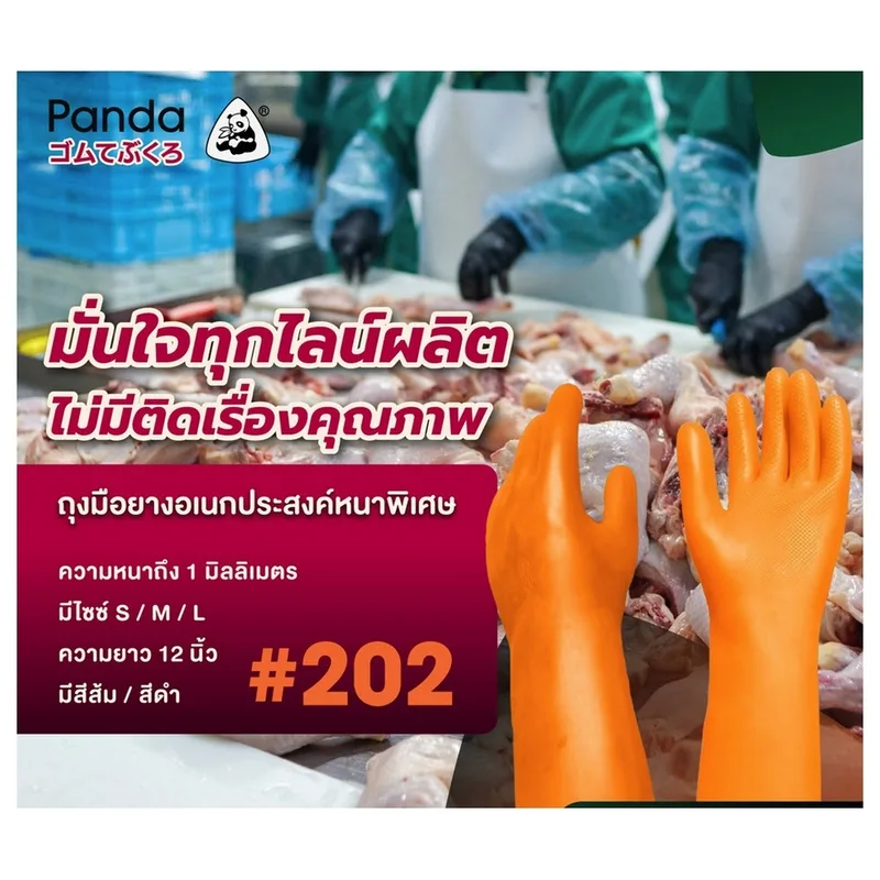 ถุงมือยางธรรมชาติ PANDA สีส้ม ไซส์เล็ก S ความยาว 13 นิ้ว รุ่น 202