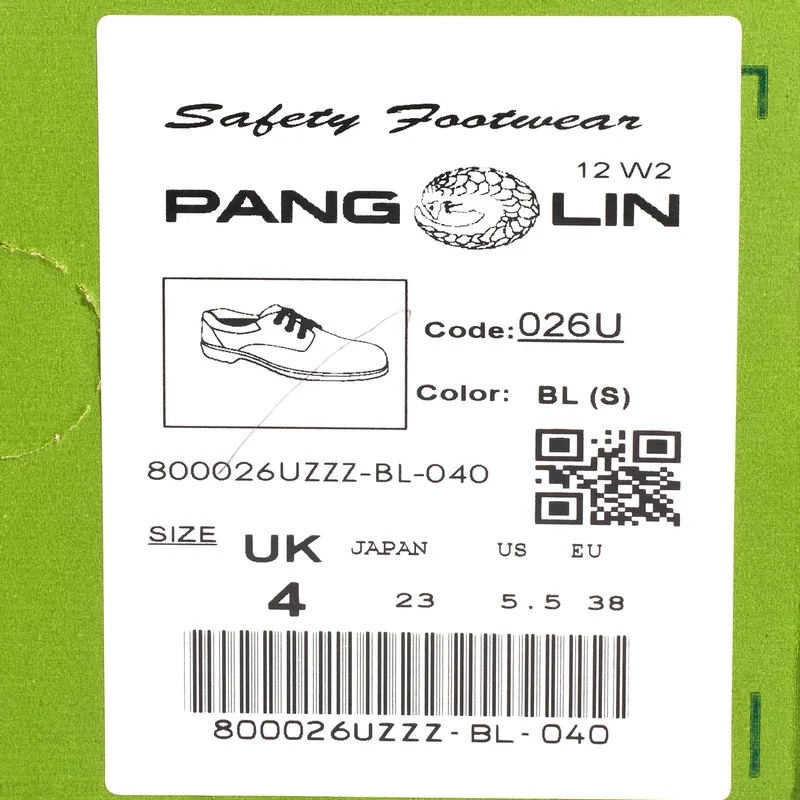 รองเท้านิรภัยหุ้มส้น พื้น PU ไซส์ 4 UK PANGOLIN รุ่น 0026 สีดำ