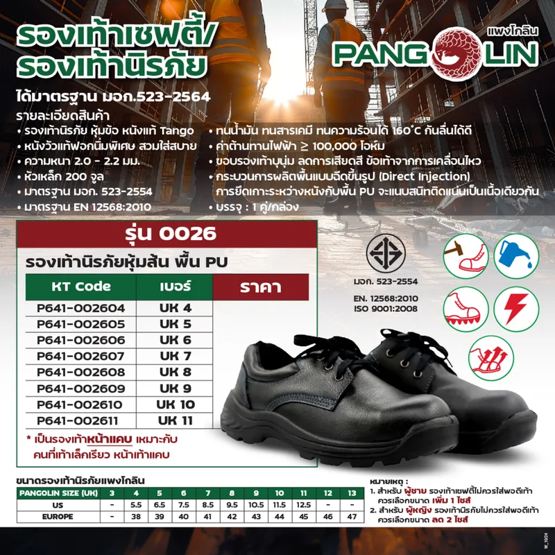 PANGOLIN 0026 #4 รองเท้านิรภัยหุ้มส้น พื้น PU