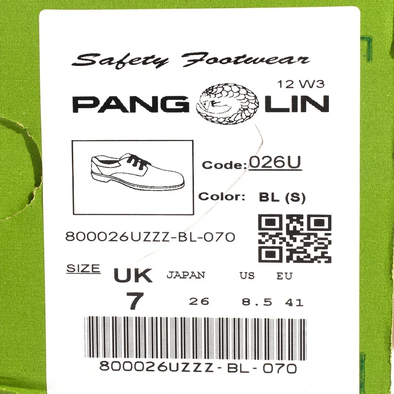 รองเท้านิรภัยหุ้มส้น พื้น PU ไซส์ 7 UK PANGOLIN รุ่น 0026 สีดำ