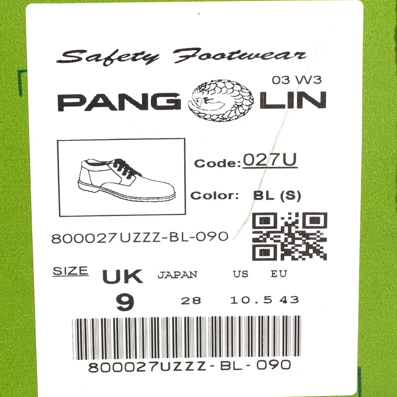 รองเท้านิรภัยหุ้มข้อ พื้น PU ไซส์ 9 UK PANGOLIN รุ่น 0027 สีดำ