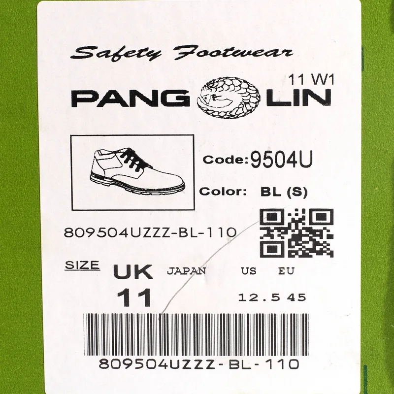 รองเท้านิรภัยหุ้มข้อ พื้น PU ไซส์ 11 UK PANGOLIN รุ่น 9504 สีดำ