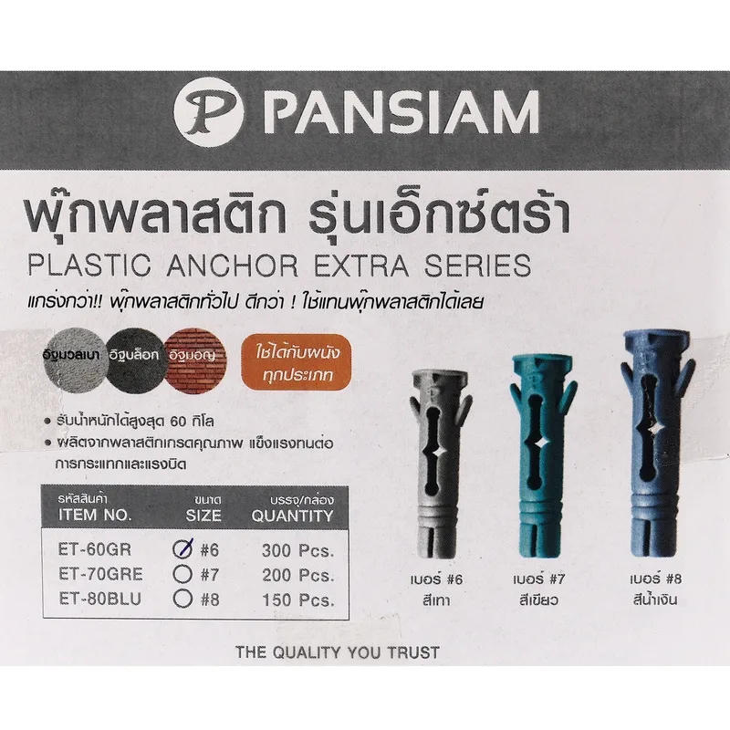 PANSIAM ET60GR-B ชุดพุ๊กพลาสติกเอ็กซ์ตร้า เบอร์ 6
