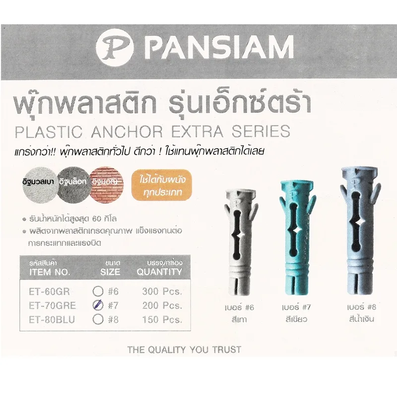 PANSIAM ET70GRE-B ชุดพุ๊กพลาสติกเอ็กซ์ตร้าเบอร์7