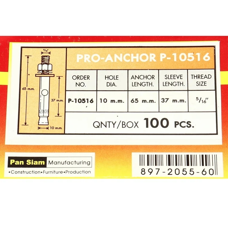 PANSIAM พุกเหล็ก ขนาดเกลียว 5/16 นิ้ว รุ่น P-10516 (บรรจุ : 100 ชิ้น/กล่อง)