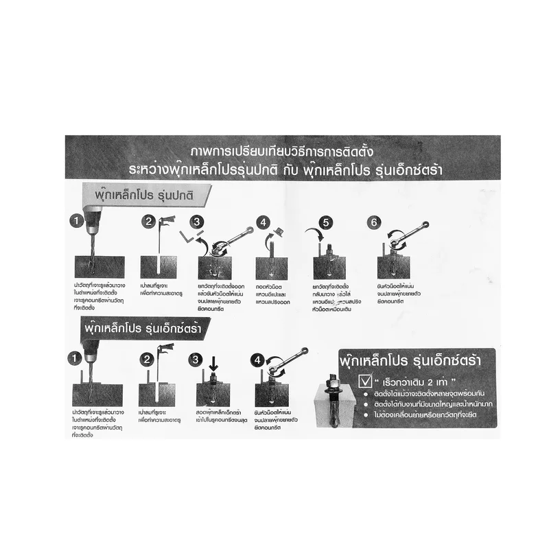 - ติดตั้งได้รวดเร็วกว่าพุ๊กเหล็กปกติ ประหยัดเวลากว่า