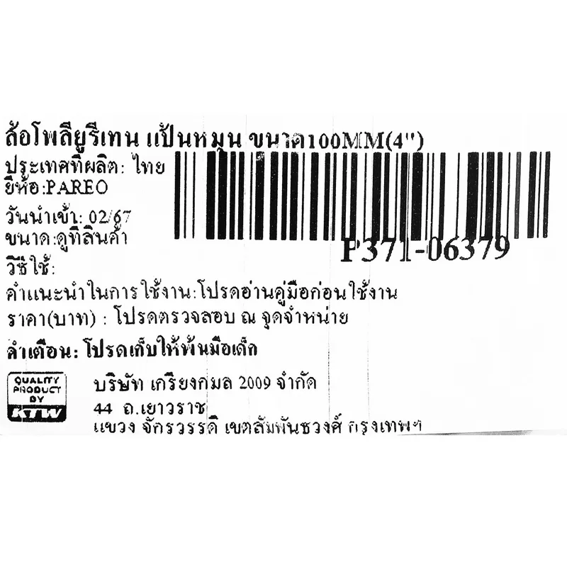 PAREO ลูกล้อโพลียูรีเทนแกนเหล็กหล่อ แป้นหมุน 100 มม. (4 นิ้ว) รับน้ำหนักได้ 125 กก.