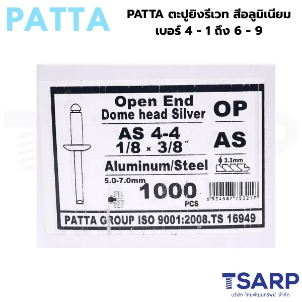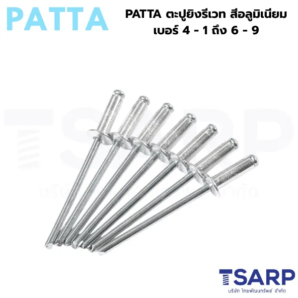 PATTA ตะปูยิงรีเวท ลูกรีเวท สีอลูมิเนียม เบอร์ 4-1 ถึง 6-9