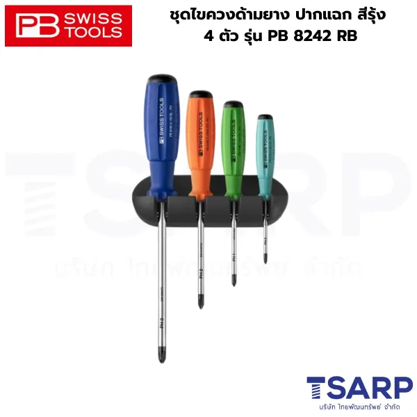 PB SWISS ชุดไขควงด้ามยาง ปากแฉก สีรุ้ง 4 ตัว รุ่น PB 8242 RB