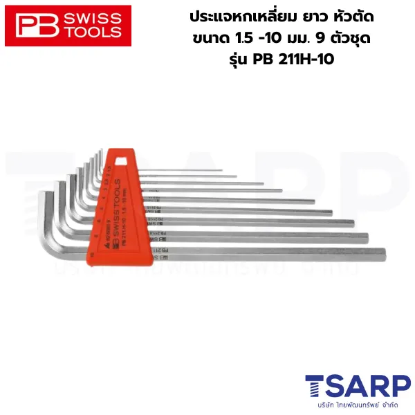 PB SWISS ประแจหกเหลี่ยม ยาว หัวตัด ขนาด 1.5 -10 มม. 9 ตัวชุด รุ่น PB 211H-10