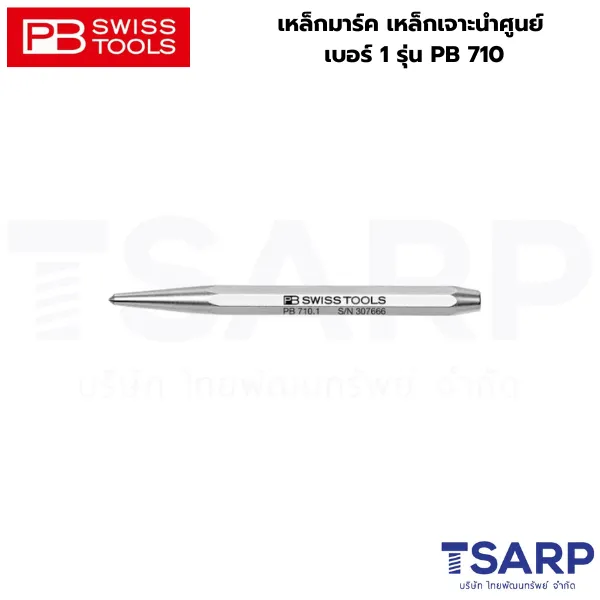 รุ่น 710 ผลิตจากเหล็กอัลลอยด์พิเศษตามมาตรฐานคุณภาพของ PB Swiss Tools โดยเน้นความแข็งของปลายเหล็กให้สูงเป็นพิเศษ เพื่อให้สามารถเจาะนำศูนย์บนวัสดุที่มีความแข็งได้โดยปลายไม่บิ่นหรือทื่อ ตัวด้ามออกแบบเป็นทรงแปดเหลี่ยม (Octagonal) ซึ่งให้การยึดจับที่มั่นคง ไม่กลิ้งตกจากโต๊ะทำงาน และช่วยให้ผู้ใช้ควบคุมทิศทางได้อย่างแม่นยำขณะใช้งาน