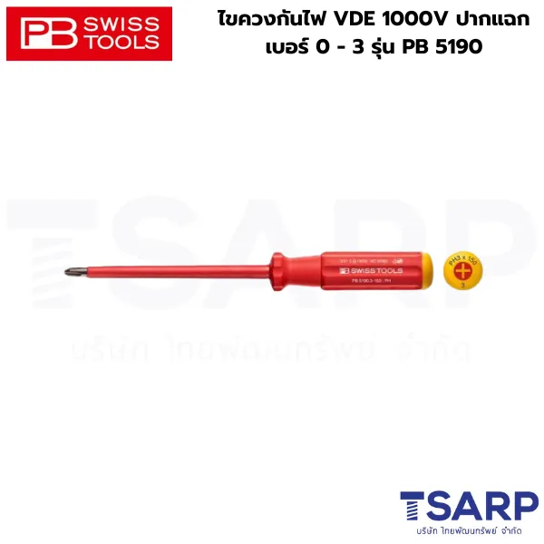 PB SWISS ไขควงกันไฟ VDE 1000V ปากแฉก เบอร์ 0 – 3 รุ่น PB 5190