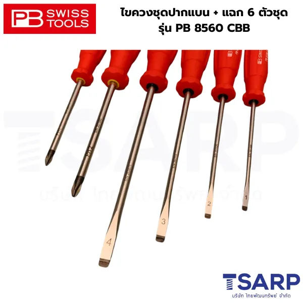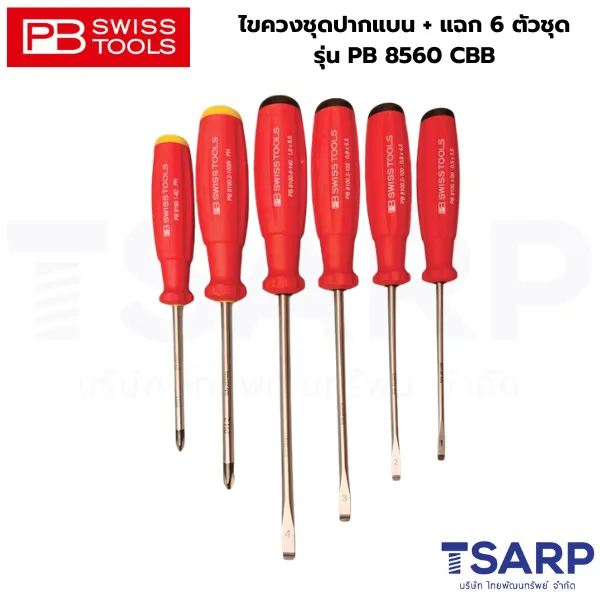 PB SWISS ไขควงชุดปากแบน + แฉก 6 ตัวชุดบรรจุกล่อง รุ่น PB 8560 CBB