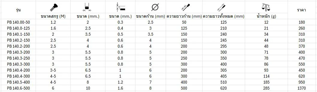 PB SWISS ไขควงปากแบน เบอร์ 00 – 6 รุ่น PB 140