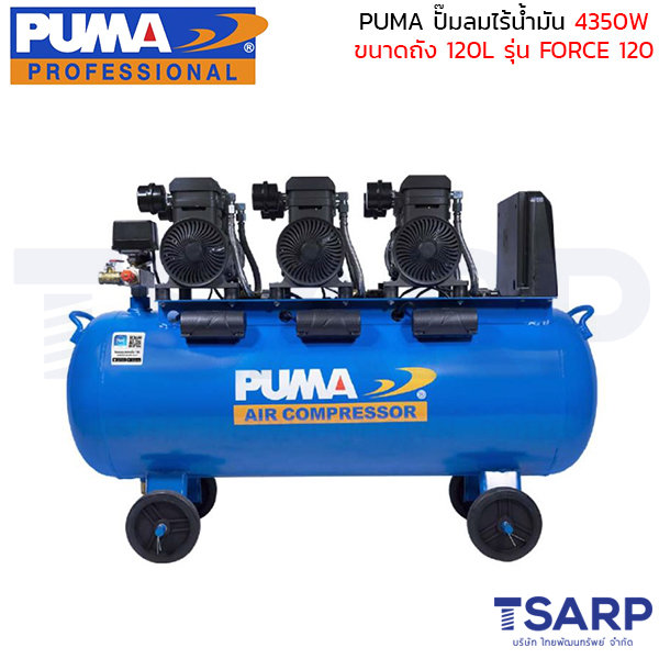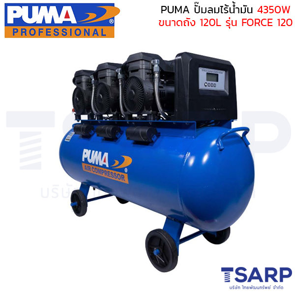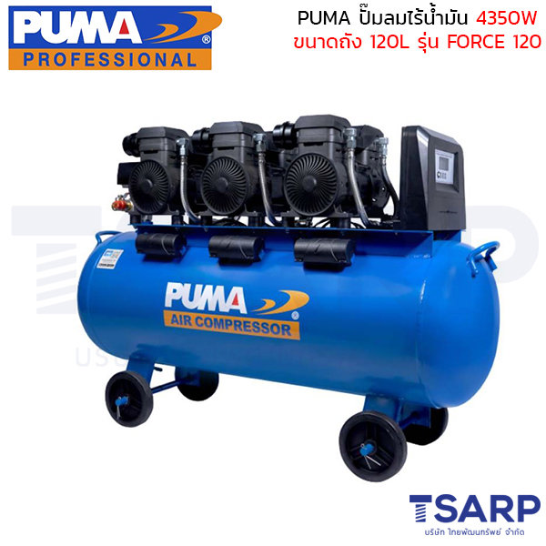PUMA ปั๊มลมไร้น้ำมัน 4350W ถังขนาด 120L รุ่น FORCE 120