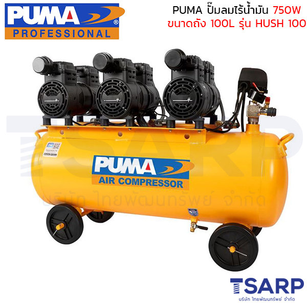 PUMA ปั๊มลมไร้น้ำมัน 750W x 3 ถังขนาด 100L รุ่น HUSH 100