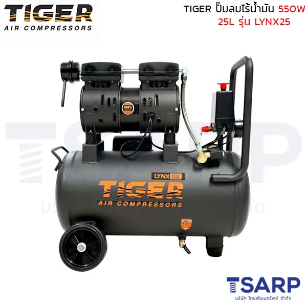 TIGER ปั๊มลมไร้น้ำมัน LYNX25 550W ถัง 25 ลิตร