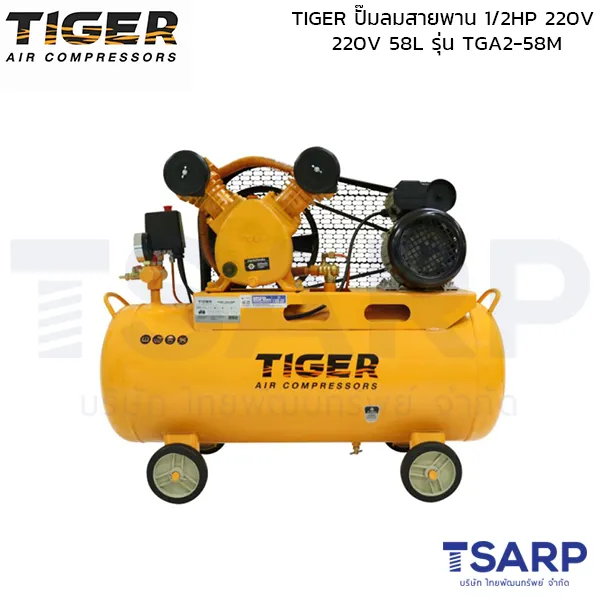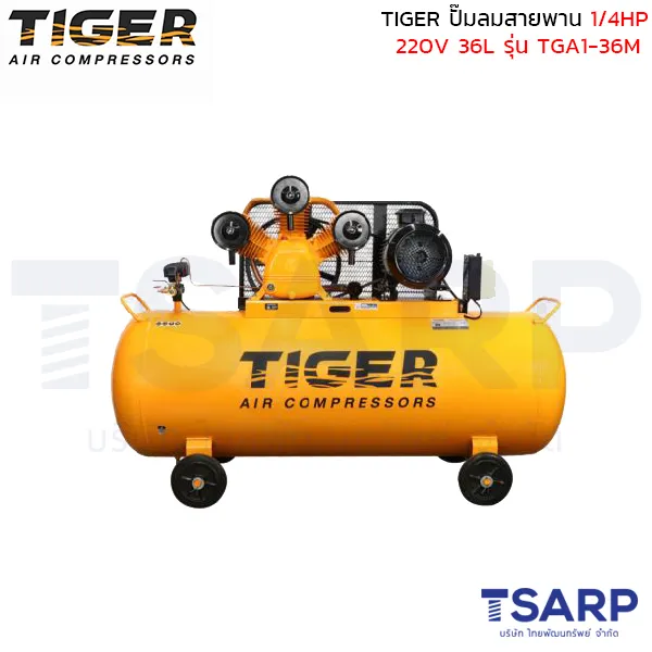 TIGER ปั๊มลมสายพาน TGA1-36M 1/4HP มอเตอร์ 1HP 220V. ถัง 36 ลิตร