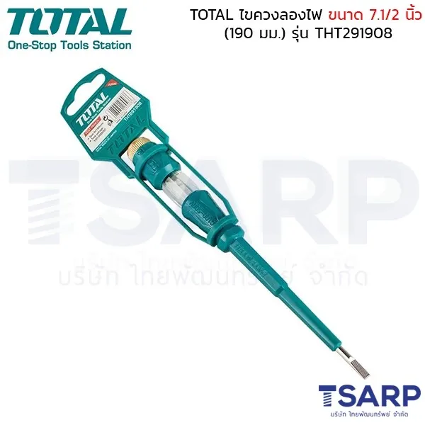 TOTAL ไขควงลองไฟ ขนาด 7.1/2 นิ้ว รุ่น THT291908• ช่วงการทดสอบ 100 – 500 โวลต์