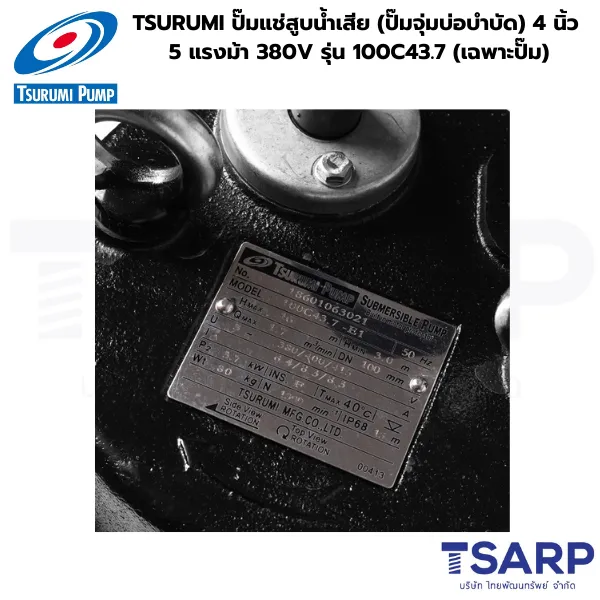 TSURUMI ปั๊มแช่สูบน้ำเสีย (ปั๊มจุ่มบ่อบำบัด) 4 นิ้ว 5 แรงม้า 380V รุ่น 100C43.7 (เฉพาะปั๊ม)