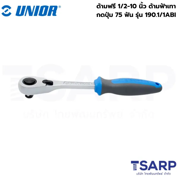 UNIOR ด้ามฟรี 1/2-10นิ้ว ด้ามฟ้าเทา กดปุ่ม 75 ฟัน รุ่น 190.1/1ABI