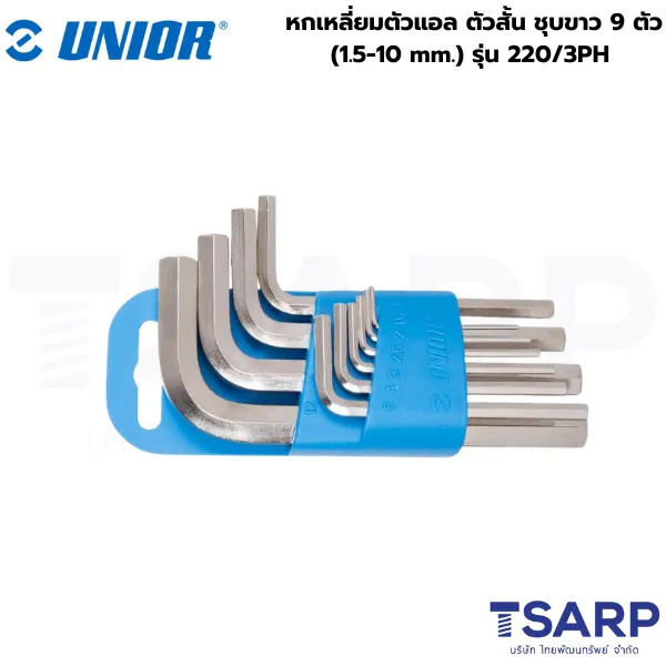UNIOR หกเหลี่ยมตัวแอล ตัวสั้น ชุบขาว 9 ตัว (1.5-10 mm.) รุ่น 220/3PH