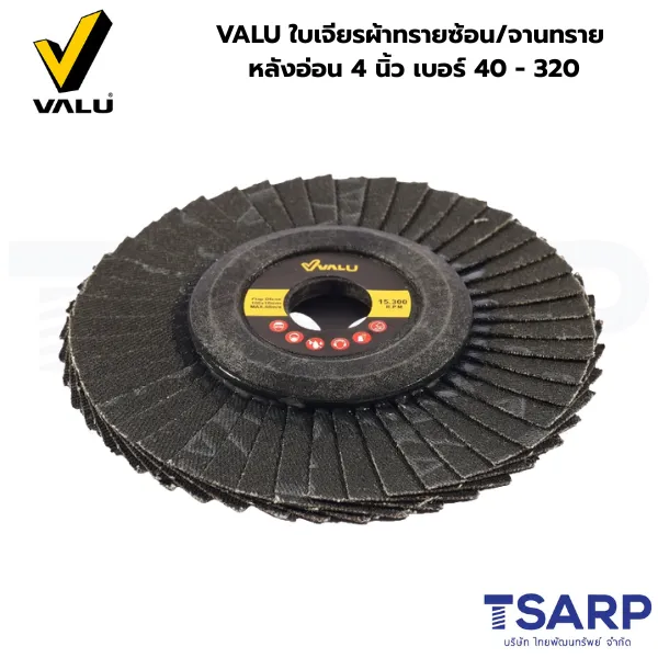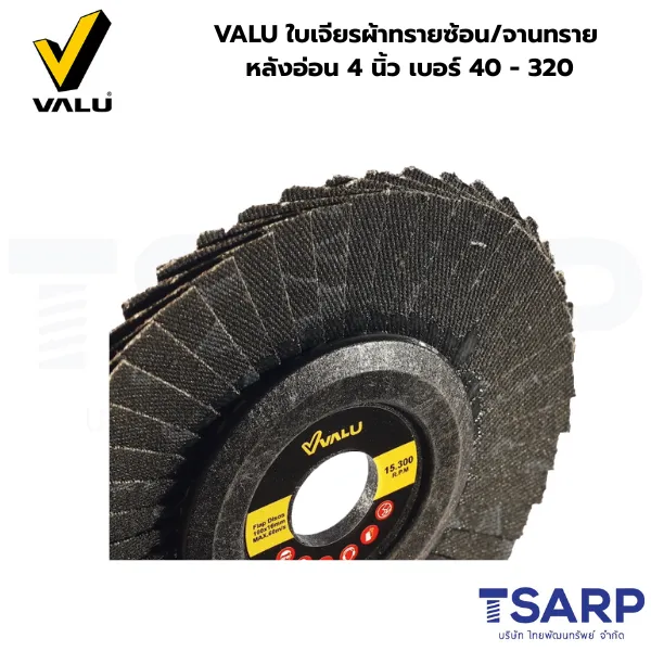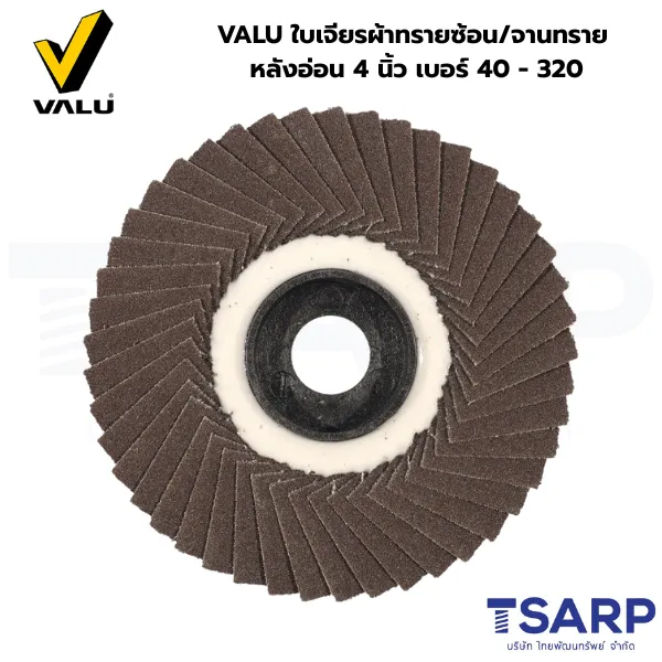 VALU ใบเจียรผ้าทรายซ้อน/จานทราย หลังอ่อน 4 นิ้ว เบอร์ 40 – 320