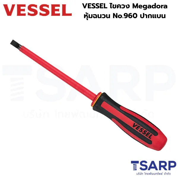- ไขควงปากแบน VESSEL Megadora No.960 รุ่น Insulated (กันไฟฟ้า)