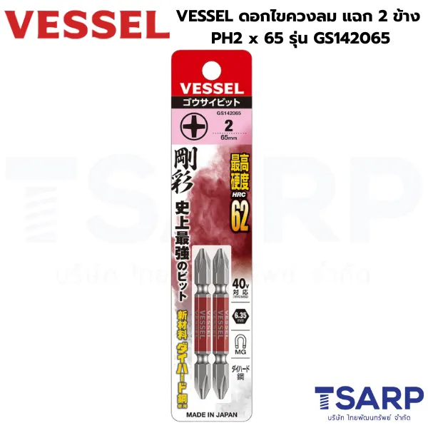- VESSEL ดอกไขควงลมปากแฉก (+) 2 หัว PH2 x 65 มม. รุ่น GS142065 ของแท้จากญี่ปุ่น