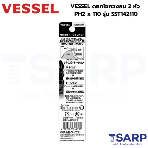 - ดอกไขควงลม VESSEL SST Series ผลิตจากเหล็กกล้าอัลลอยคุณภาพสูง ผ่านการชุบแข็งพิเศษ เพื่อรองรับแรงบิดสูง