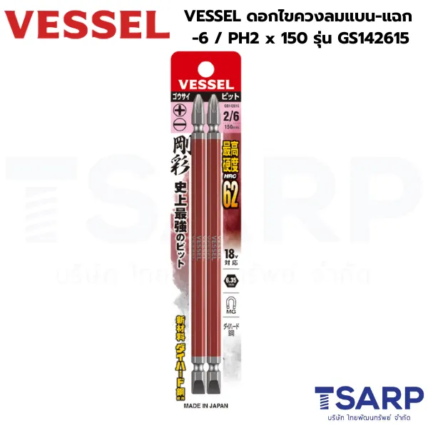 • VESSEL ดอกไขควงลมแบน-แฉก -6 / PH2 x 150 รุ่น GS142615