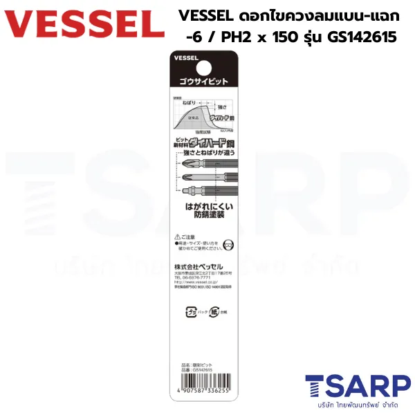 • VESSEL ดอกไขควงลม 2 หัว ปากแบน -6 และ ปากแฉก (+) PH2 ยาว 150 มม. รุ่น GS142615