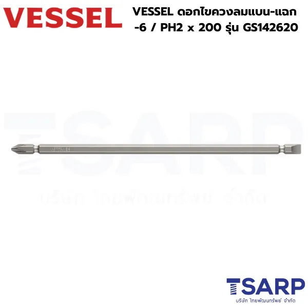 - VESSEL ดอกไขควงลม 2 หัว ปากแบน -6 และ ปากแฉก (+) PH2 ยาว 200 มม. รุ่น GS142620