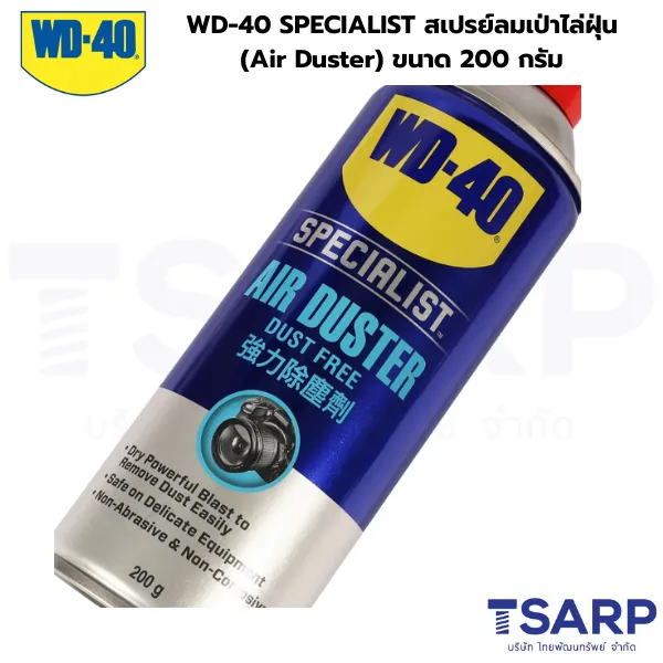 สเปรย์ลมเป่าฝุ่นจากซีรีส์ WD-40 Specialist ถูกออกแบบมาเพื่อการขจัดฝุ่นละออง สิ่งสกปรก และเศษผงขนาดเล็กออกจากอุปกรณ์อิเล็กทรอนิกส์และเครื่องมือที่มีความละเอียดอ่อน โดยที่ตัวสารไม่นำไฟฟ้าและไม่ทิ้งความชื้นหรือสารตกค้างใดๆ ไว้บนชิ้นงาน